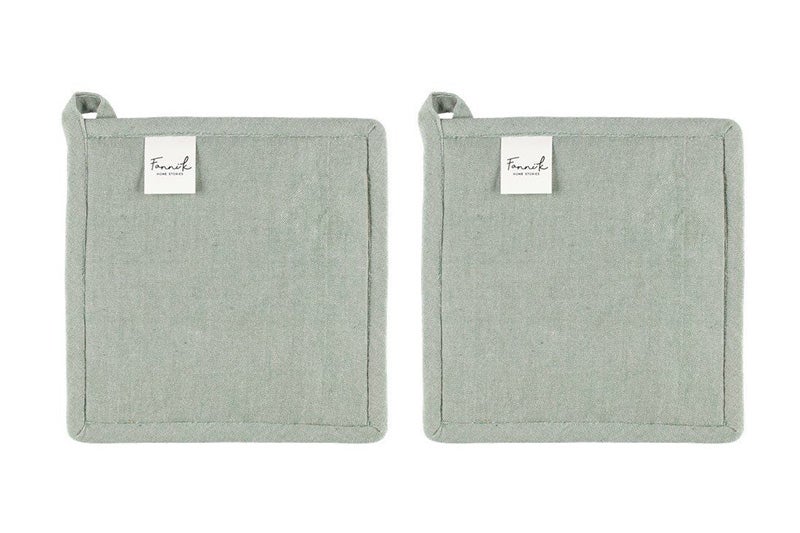 Hennon vaalean vihreät patalaput on valmistettu miellyttävästä bambu-puuvillasekoitteesta. Pehmeä materiaali tuo ripauksen arjen luksusta kodin keittiöön! Setti sisältää kaksi patalappua.