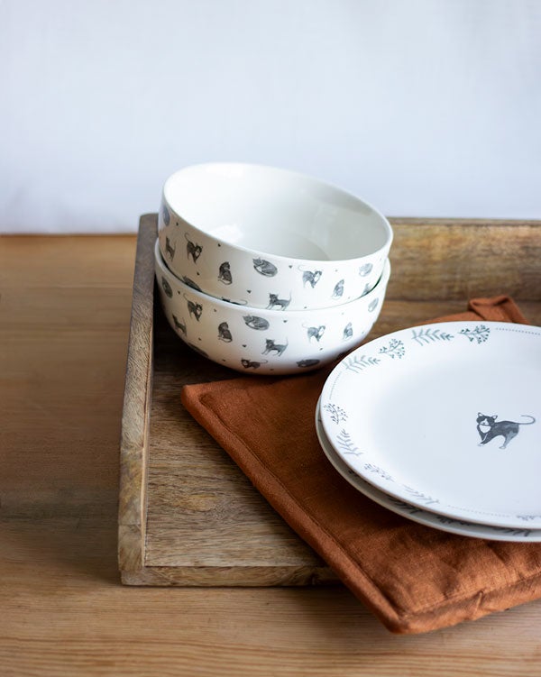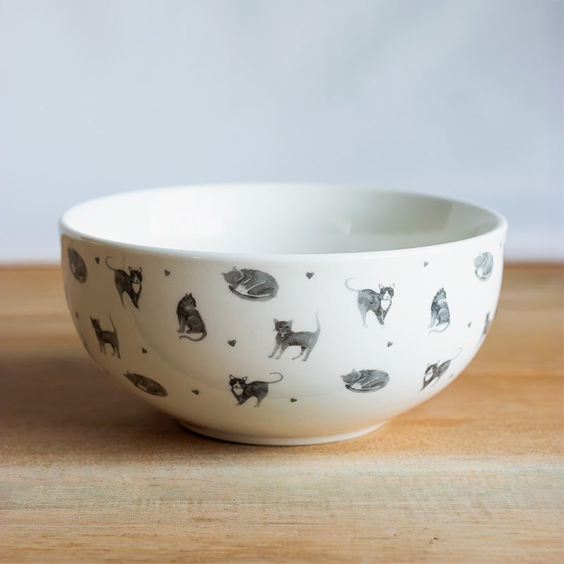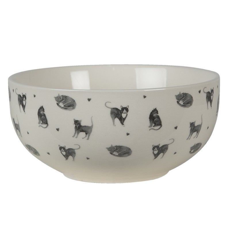 Keraamisessa kulhossa on suloinen kissa-aiheinen kuosi luonnonvalkoisella pohjalla. Kaunis kulho sopii esimerkiksi puuro- tai murokulhoksi aamupalapöytään.