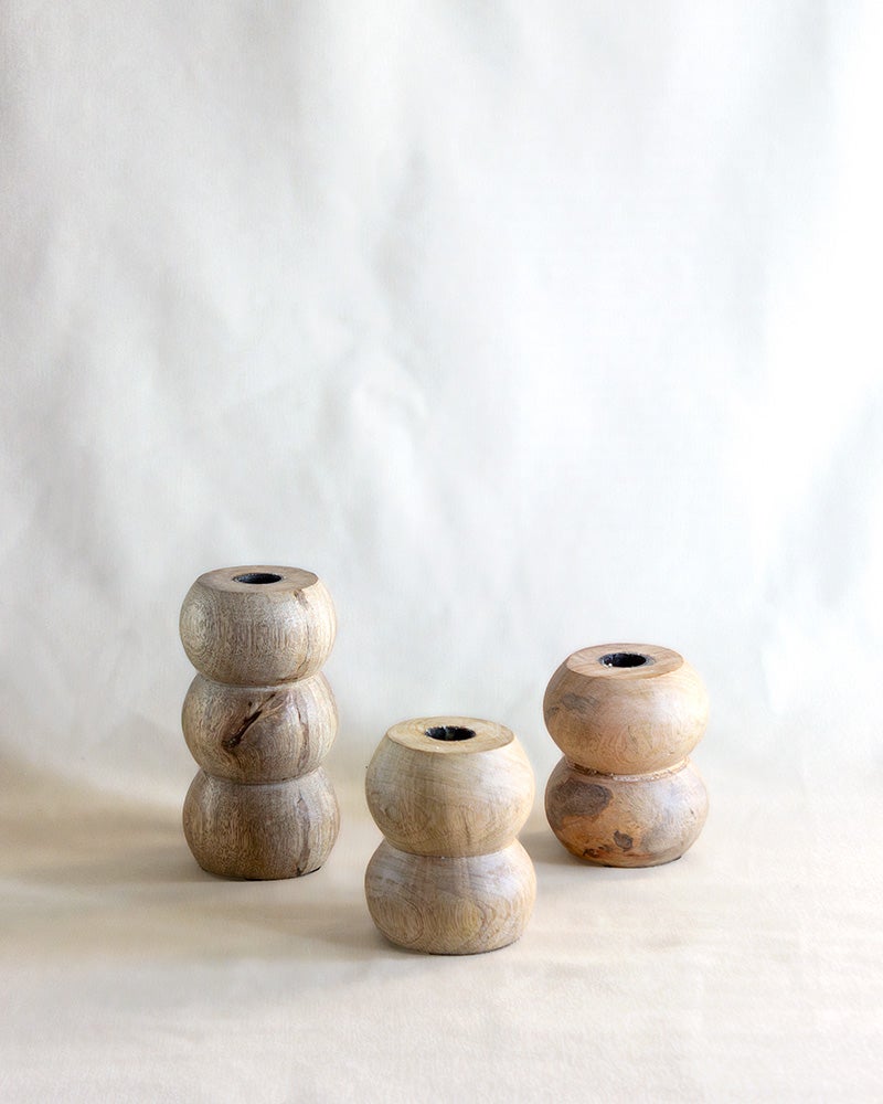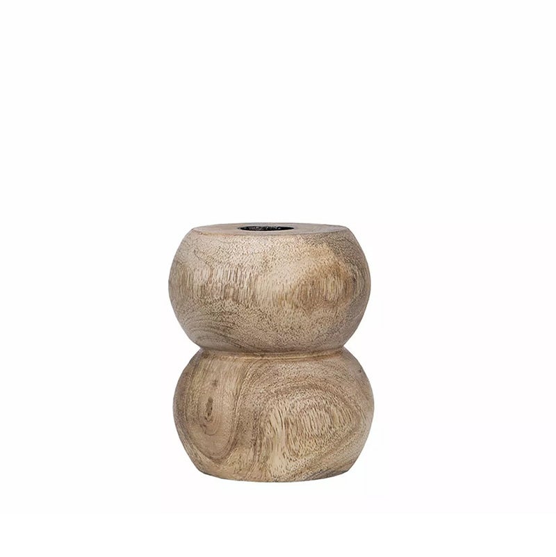 Kaunis pyöreä antiikkipuinen kynttilänjalka kruunukynttilälle.