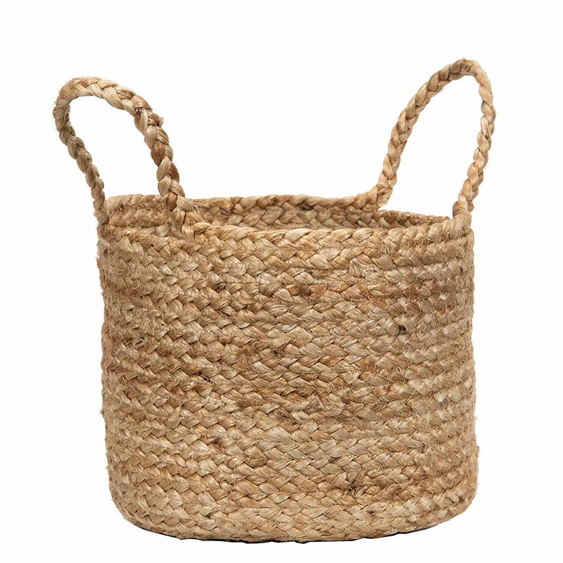 Monikäyttöinen juuttikori, esim. pientavaroiden säilytykseen tai kukkaruukun suojaksi.