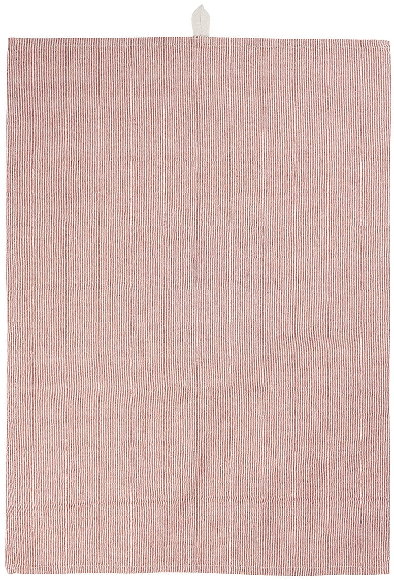 Puuvillaisessa keittiöpyyhkeessä on hentoja ruosteenpunaisia raitoja luonnonvalkoisella pohjalla. Pyyhkeessä on ripustuslenkki. Imukykyisen puuvillan ansiosta sopii niin astioiden kuivaukseen kuin käsipyyhkeeksi.