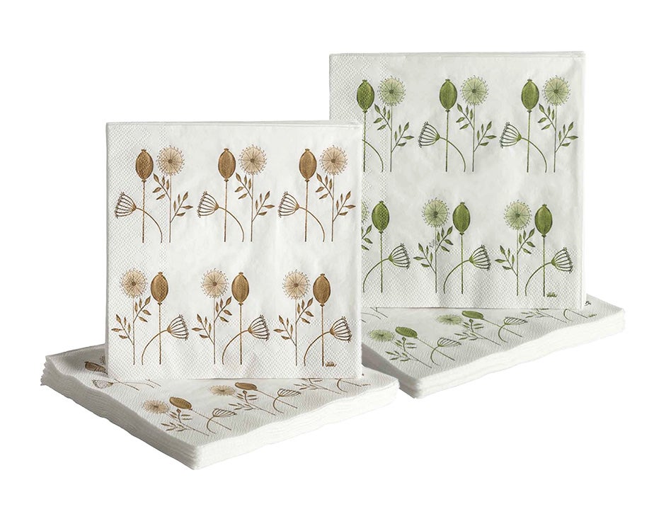 Paperisissa lautasliinoissa on yksinkertainen ja ajaton kasvikuosi, jonka on piirtänyt käsin ruotsalainen suunnittelija Camilla Ståhl. Kauniit servetit ovat miellyttävä yksityiskohta arjen kahvipöydissä ja juhlien kattauksissa!